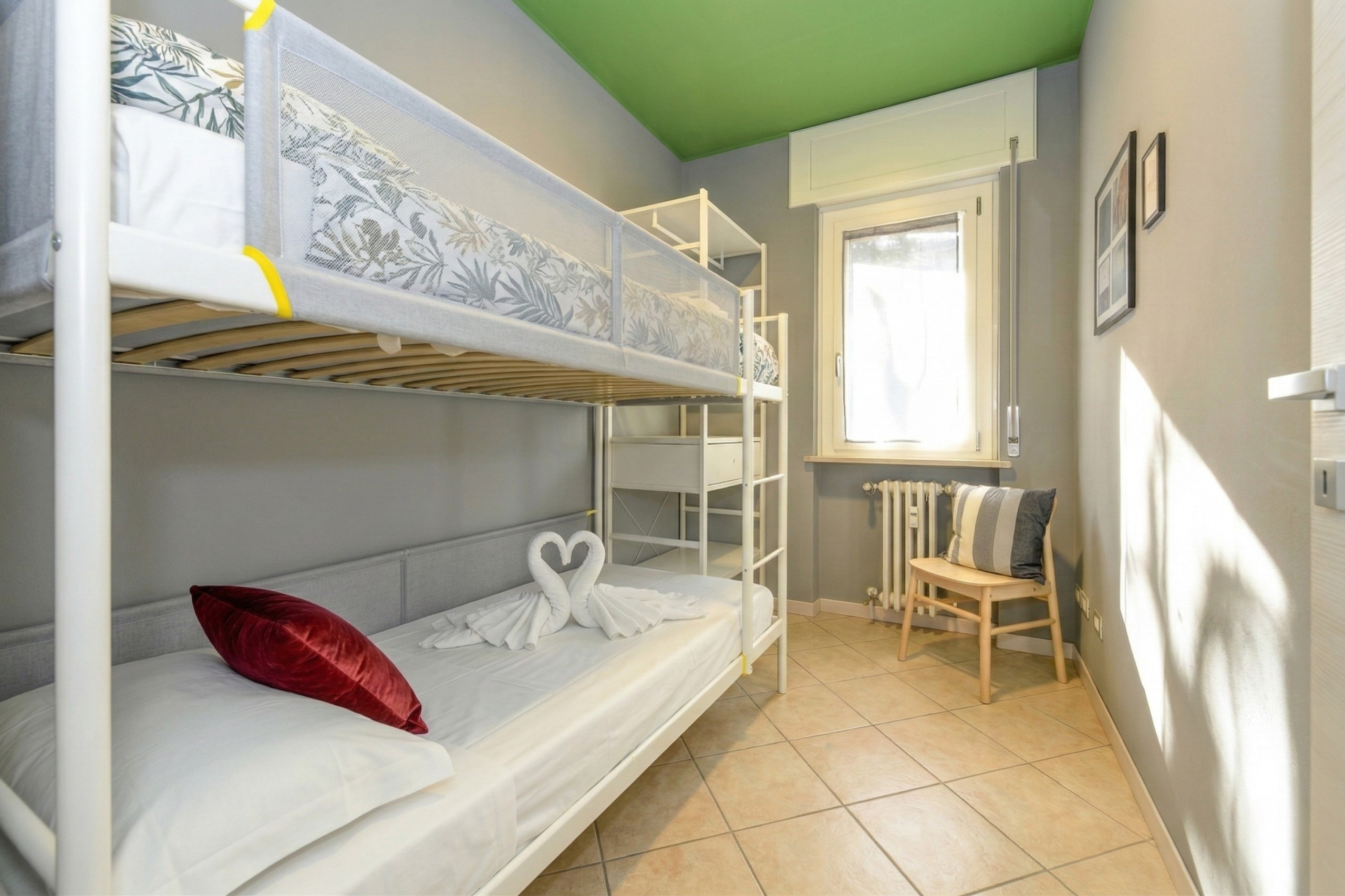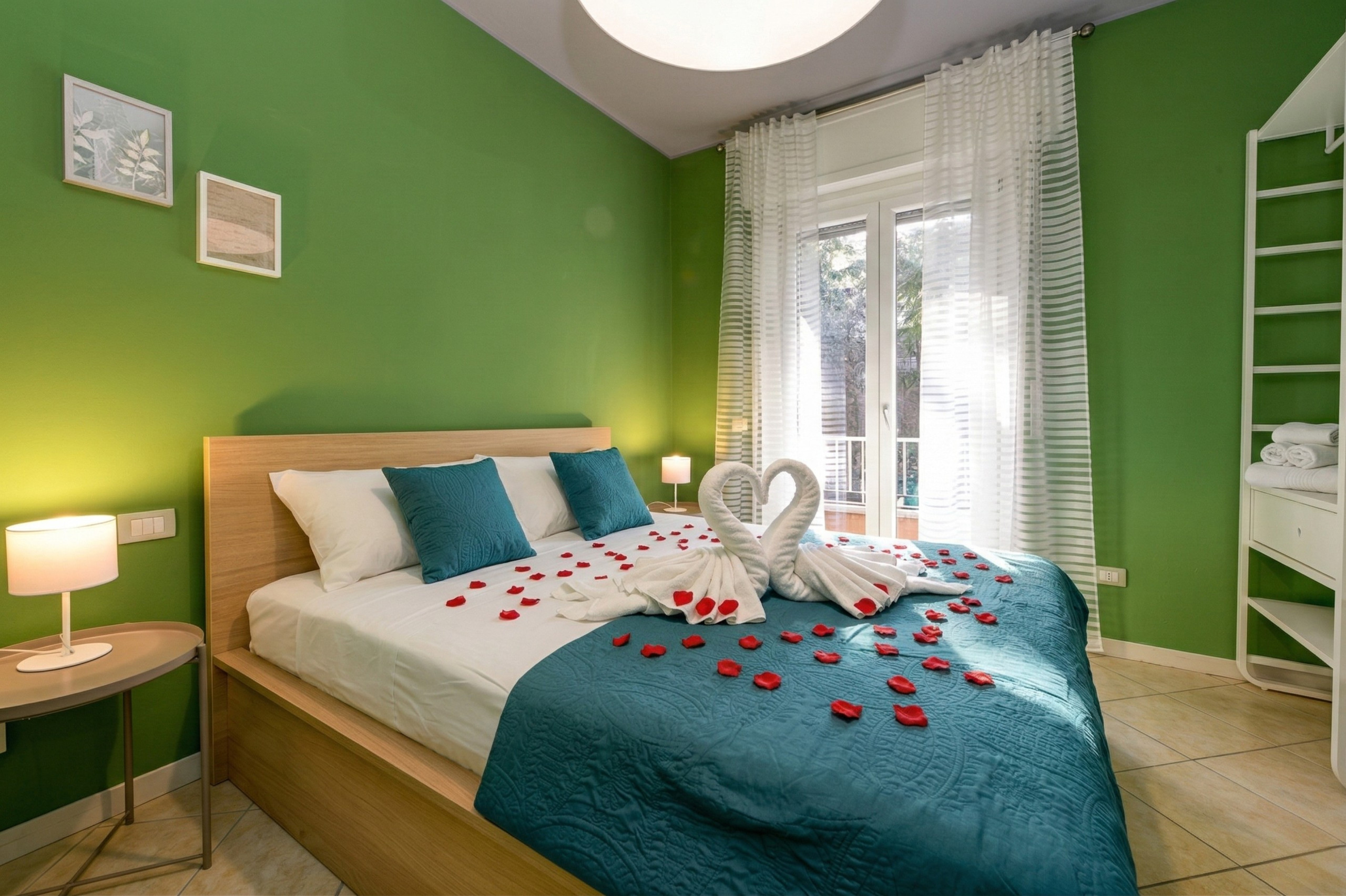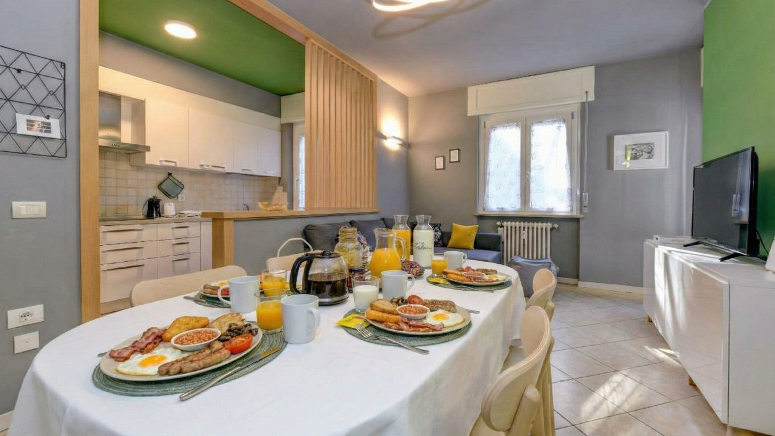 Located in a quiet residential neighbourhood, within an exclusive context of only three residential units, the brand new BACCO apartment represents the perfect choice for those seeking a stay that combines elegance, comfort, and tranquillity. Situated on the first floor of a charming building, the apartment welcomes guests with a bright living room, a spacious and welcoming environment, enriched by an open-space kitchen fully equipped with new and latest-generation appliances. The modern and functional design combines with the practicality of spaces, creating an ideal atmosphere for relaxation or a pleasant dinner with company. The balcony with double access, overlooking the street and surrounding greenery, allows enjoying moments of outdoor tranquillity, perhaps sipping a coffee in the morning or relaxing at sunset.