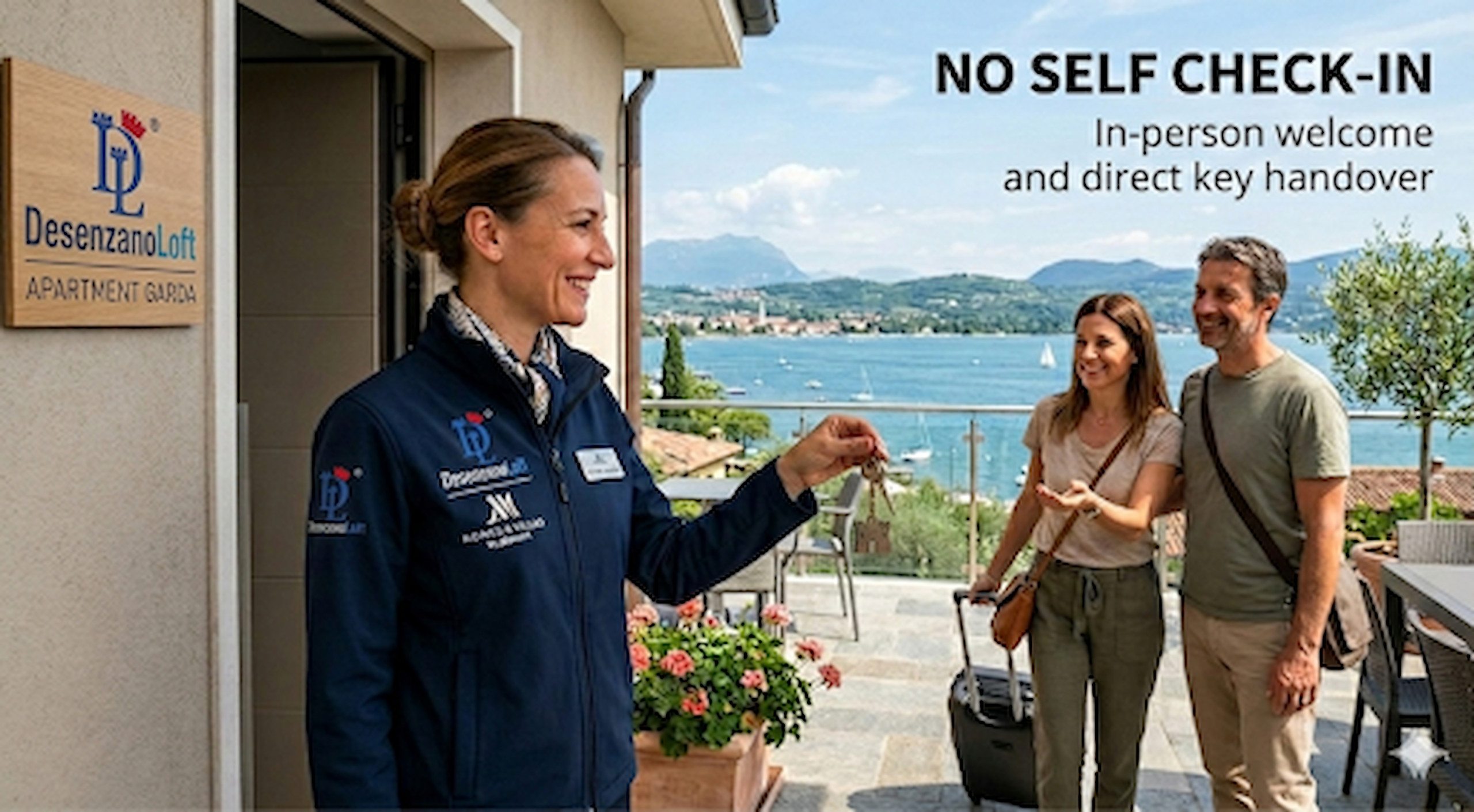 An aspect that distinguishes the Smiling on the Lake apartment is our Concierge service, active in all DesenzanoLoft apartments, designed to make your stay even more pleasant and stress-free. Starting from a week before your arrival, you will have a dedicated concierge at your disposal, who will be ready to answer any questions regarding the apartment and the surrounding area. Upon arrival, our concierge will personally welcome you, accompany you to the apartment and will be at your disposal during your stay for any needs. The concierge service is also available via direct chat, to ensure quick and personalised assistance. Our goal is to make you feel pampered and well-cared for throughout your stay, to guarantee a truly unique experience.