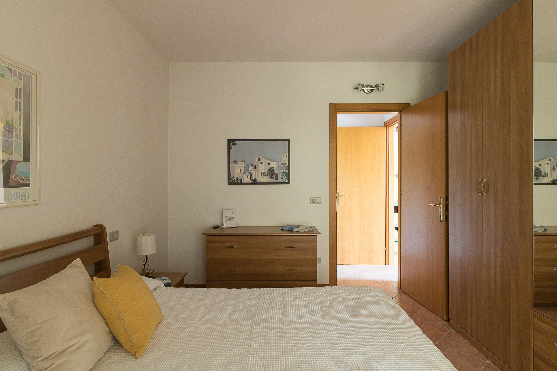 The bedroom is equipped with a double bed, large wardrobe and small TV, with access to the third balcony with winter garden including lounge - ideal for colder seasons.