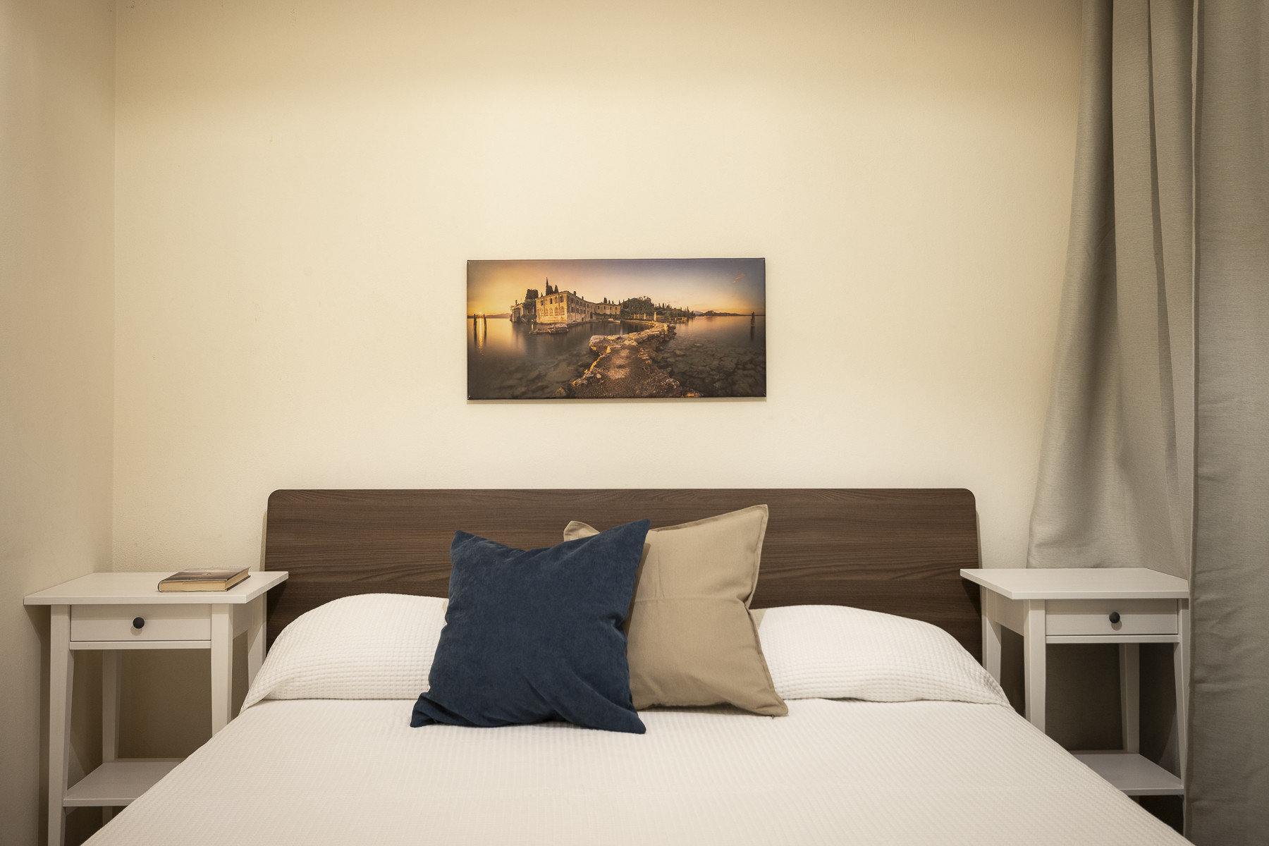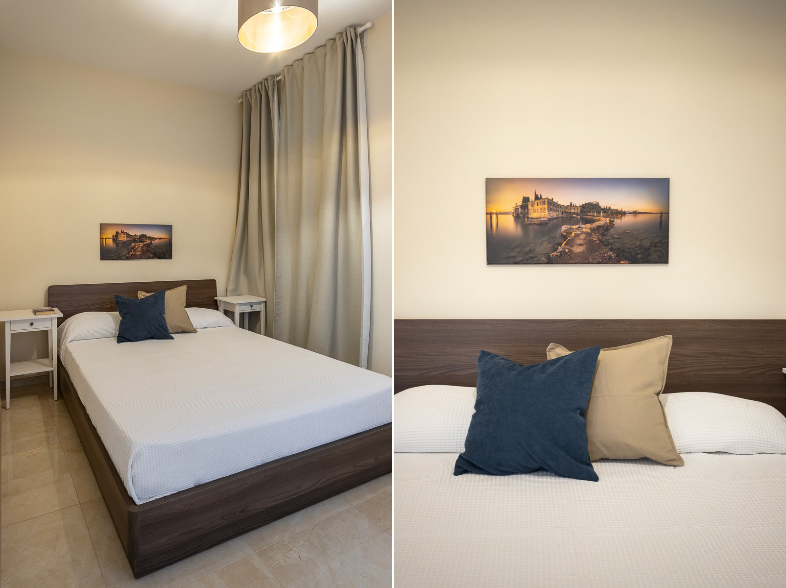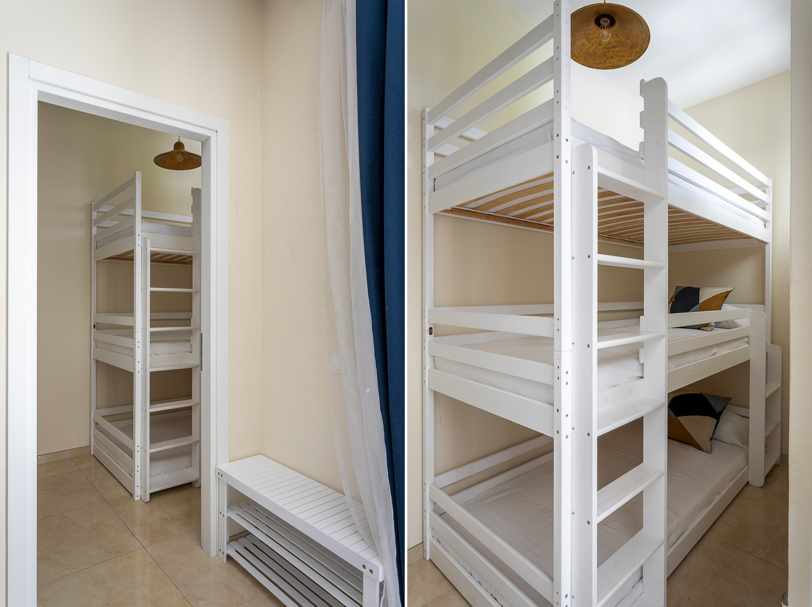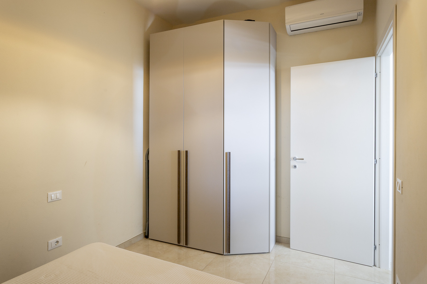 “La Baia” offers a small but comfortable double bedroom with a wardrobe, and a second bedroom with a bunk bed, wardrobe, and TV – both functional and cozy.