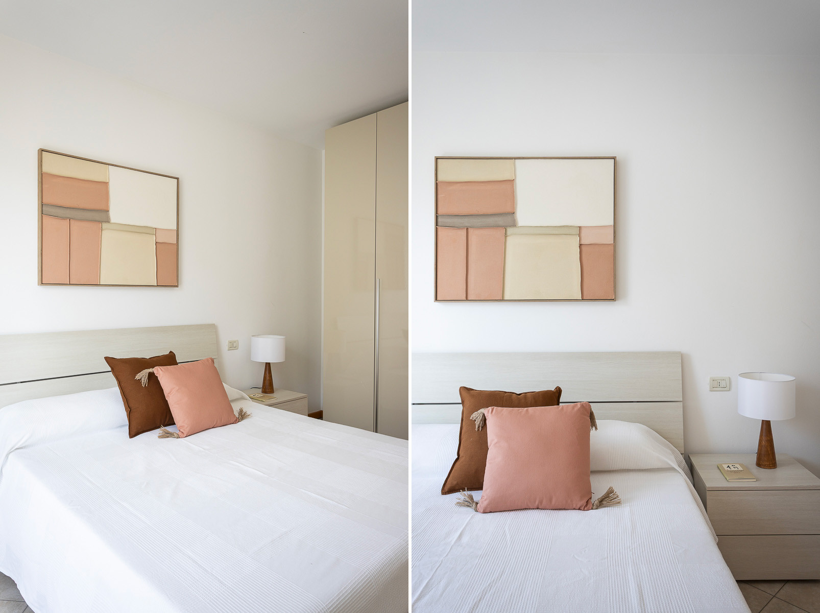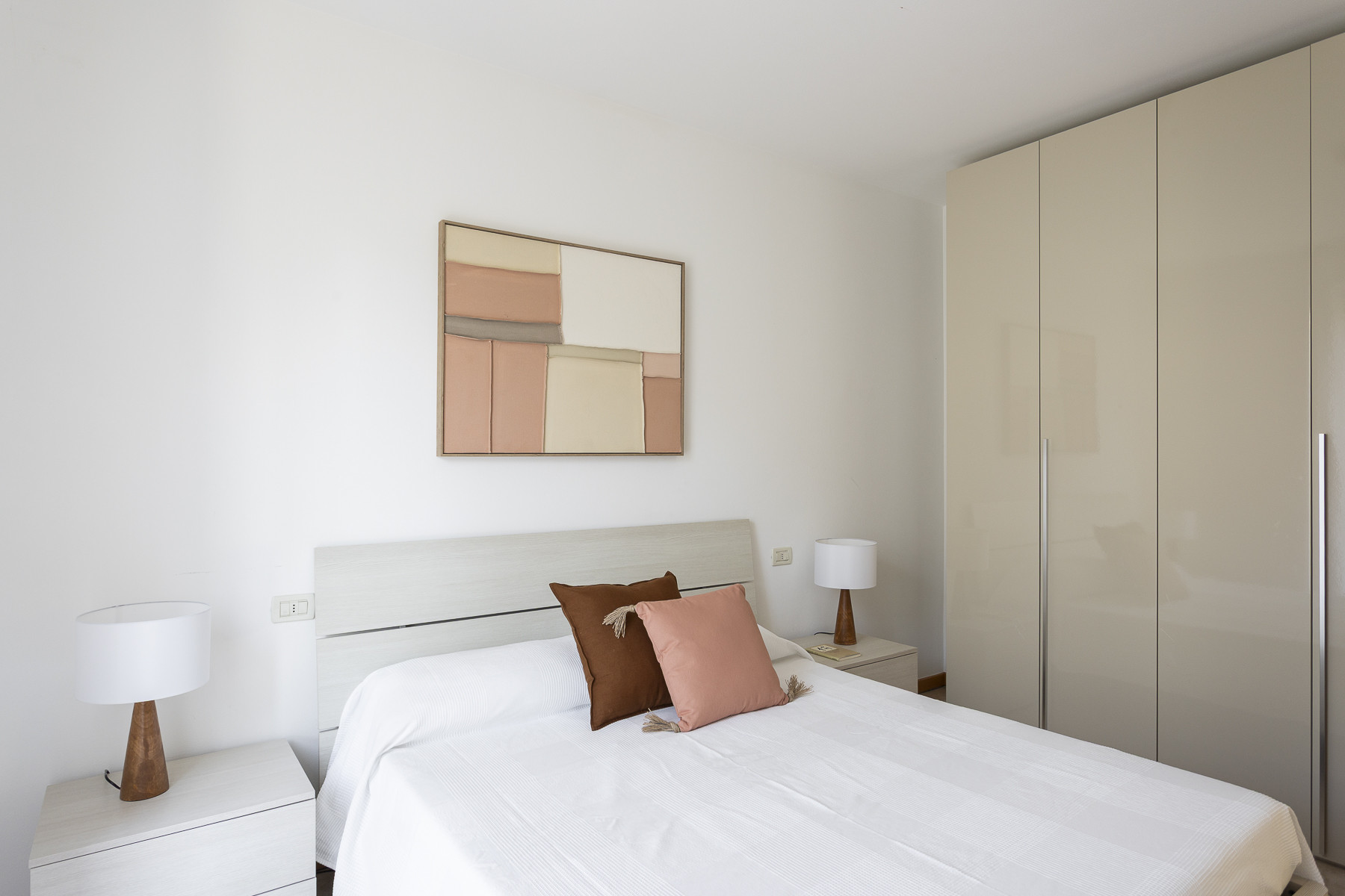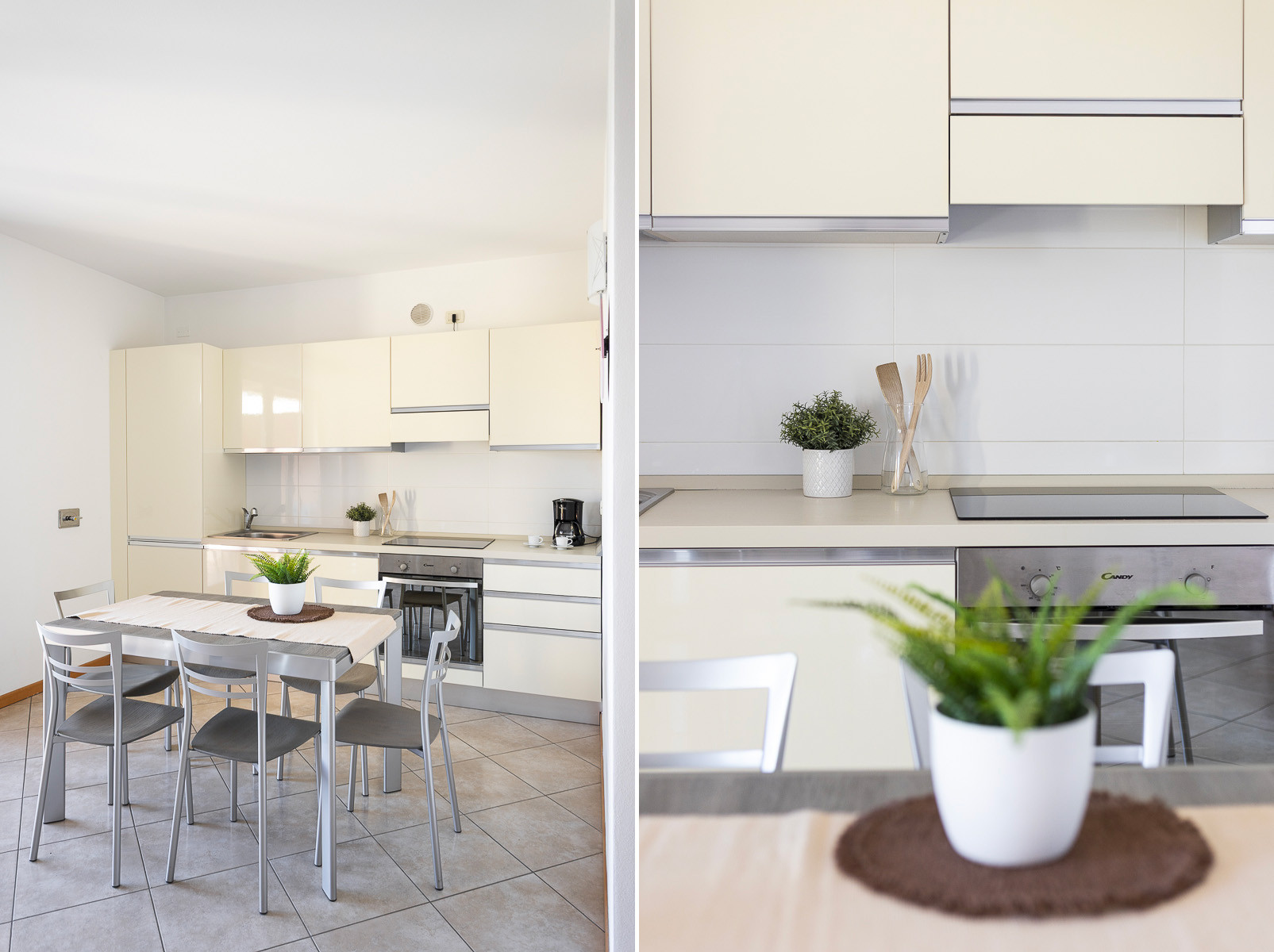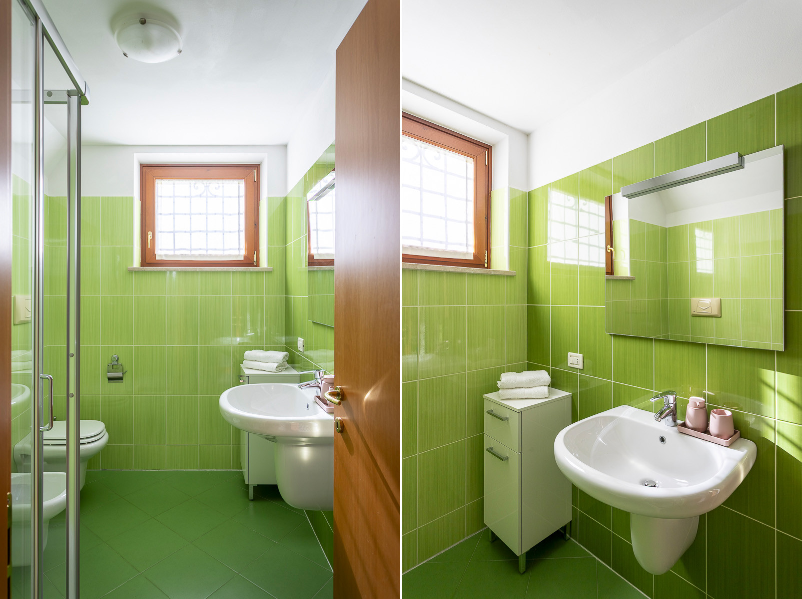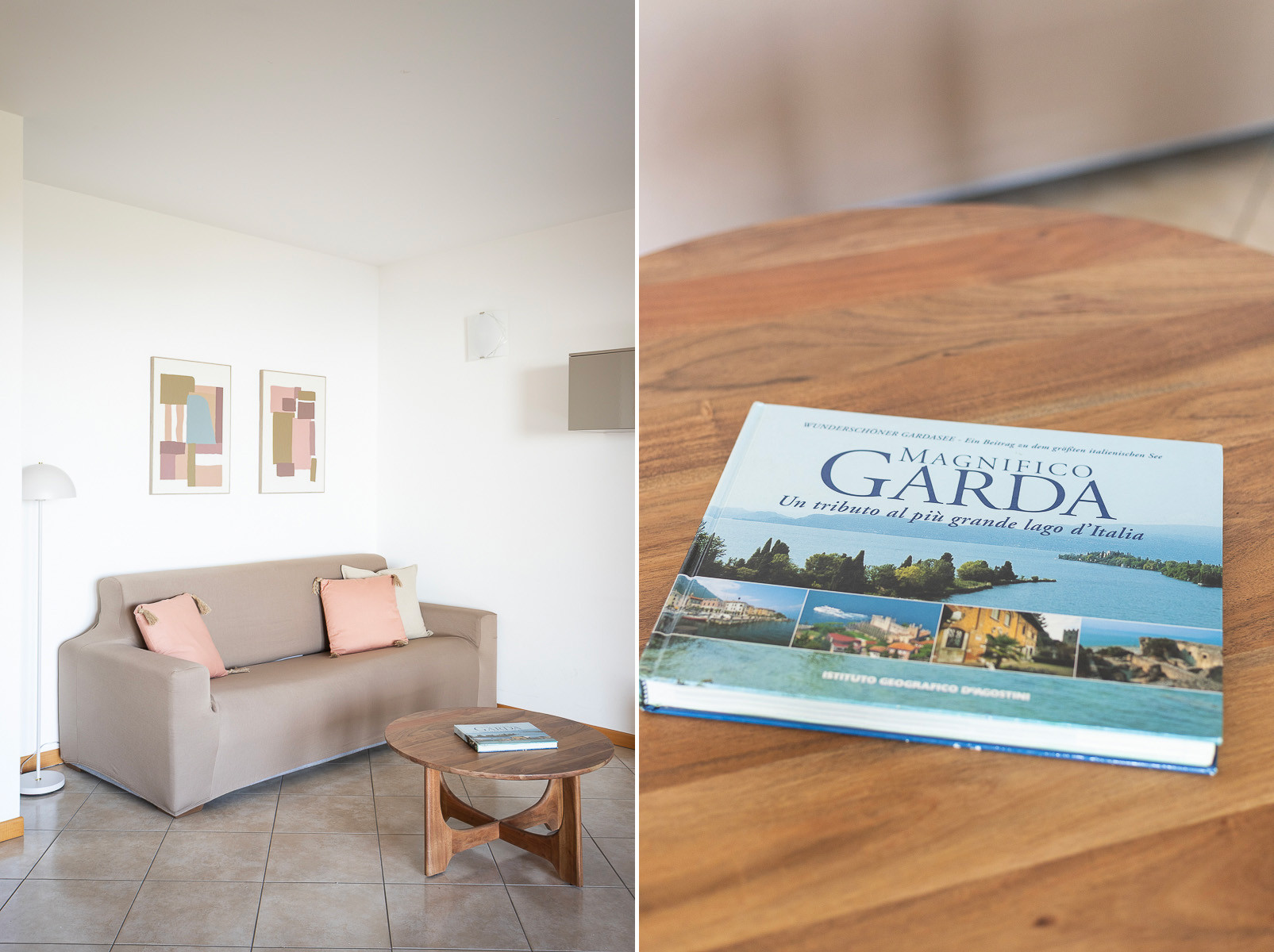 This comfortable three-room ground-floor apartment allows you to enjoy the wonderful view of Lake Garda and welcomes you with a warm and relaxing atmosphere. The interiors are decorated with delicate shades of green and antique pink, creating an elegant, harmonious, and inviting environment perfect for a memorable holiday.