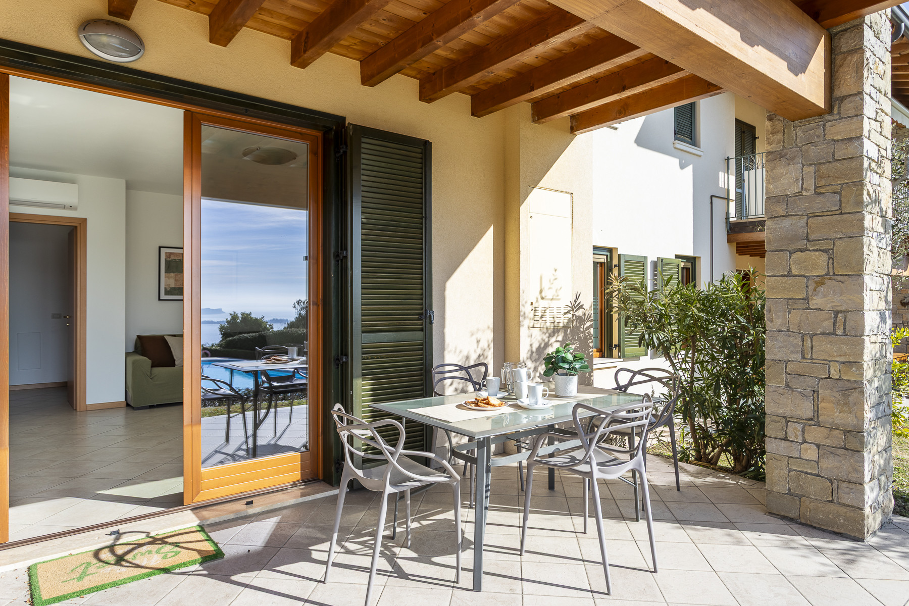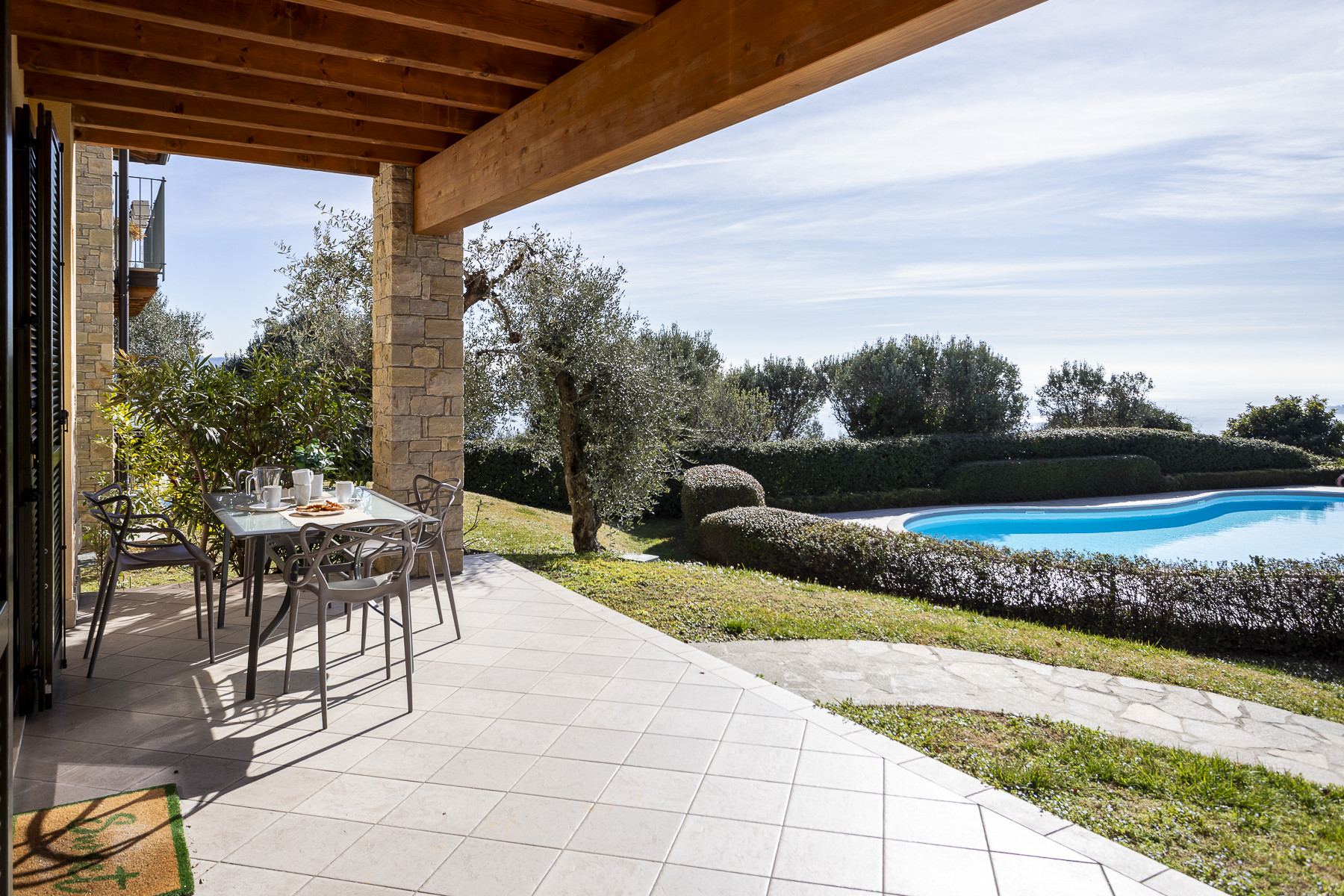 The pool is just a few steps away – close enough to watch children, yet far enough for peace and privacy.