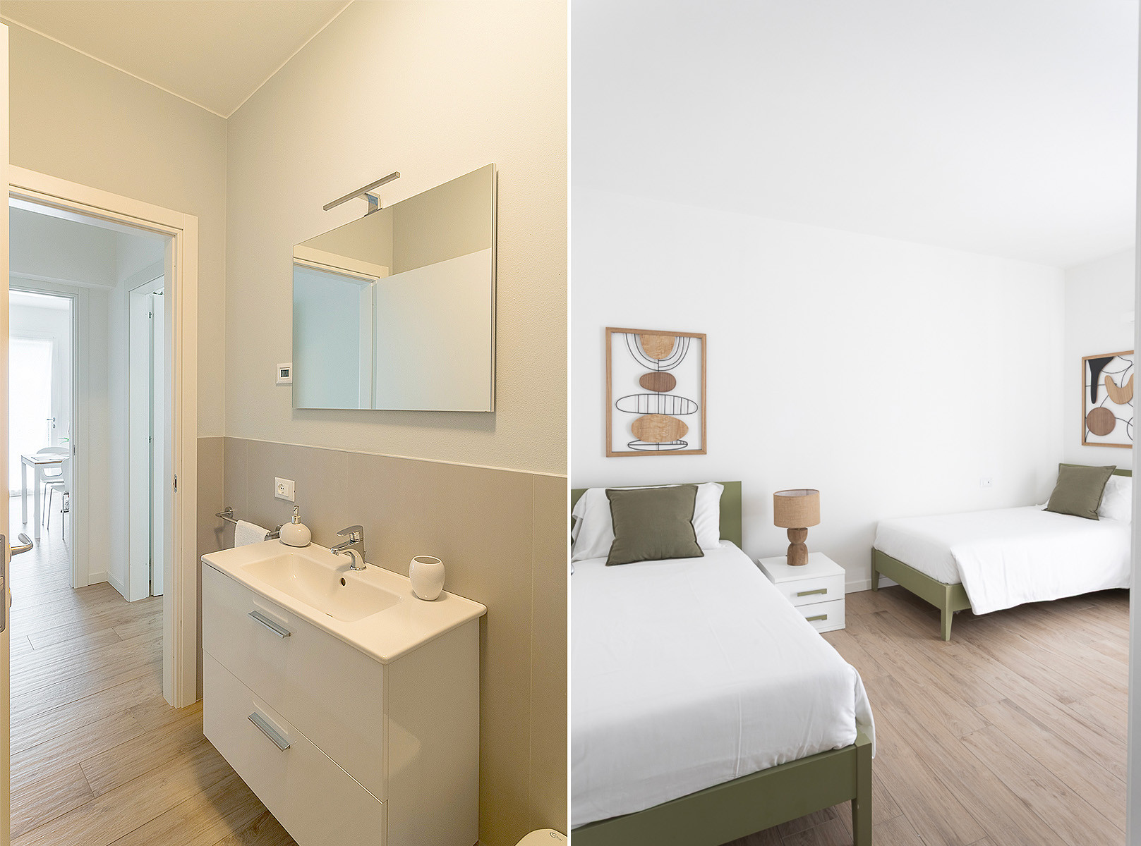 These modern and preciously furnished apartments are ideal for a relaxing holiday. The small holiday residence is only a short walk away from the beach, from the lake promenade, and from the center, and there is also a children's playground just a few steps away from the house.