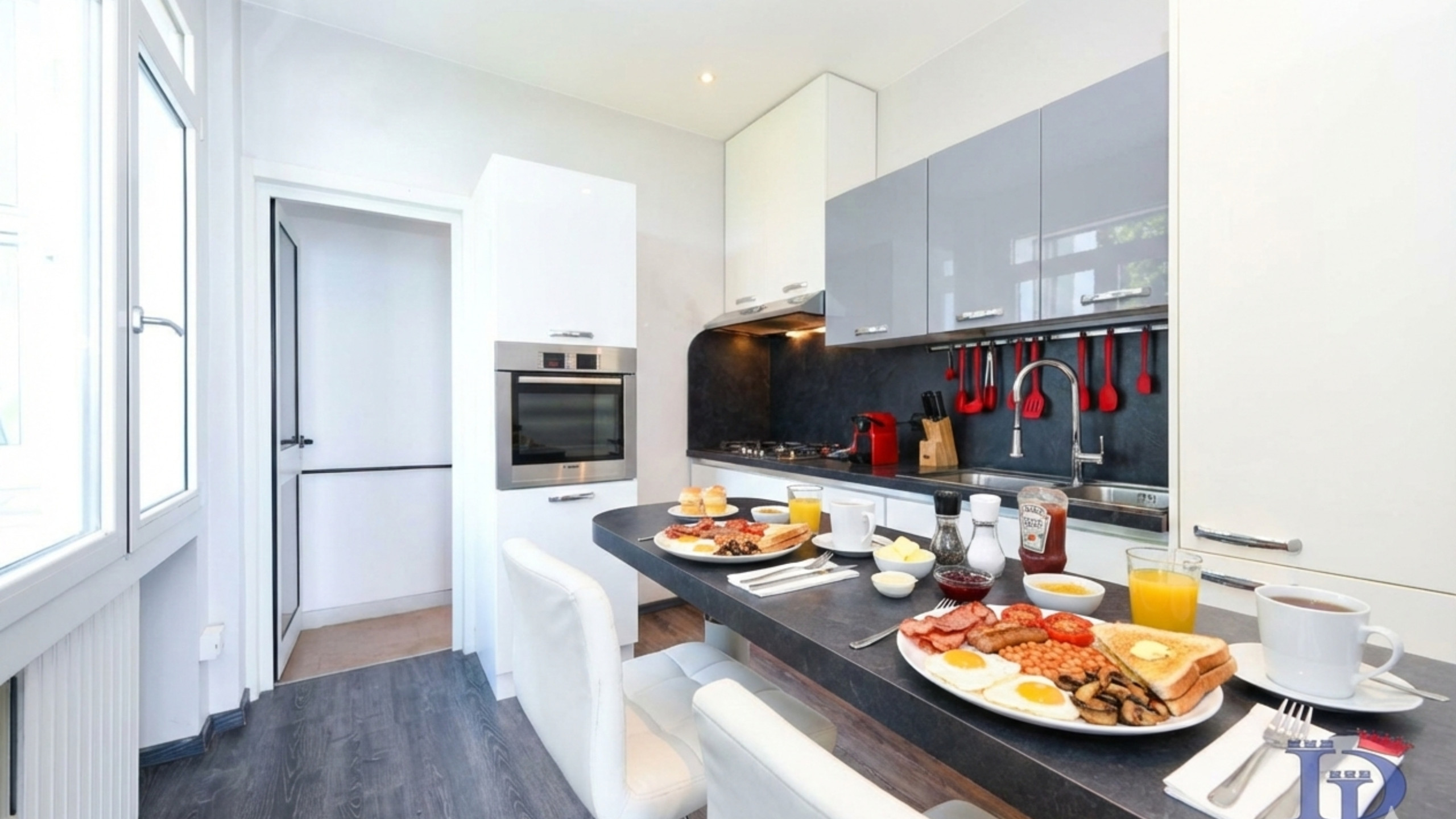 The kitchen, modern and fully equipped, is the dream of those who love cooking and sharing meals in company. Here, nothing is missing: refrigerator, freezer, oven, microwave, juicer, electric kettle, gas hob, dishwasher, coffee machine, toaster, and a wide range of kitchen utensils. Every detail is designed to offer an uncompromising experience, where practicality meets refined design.