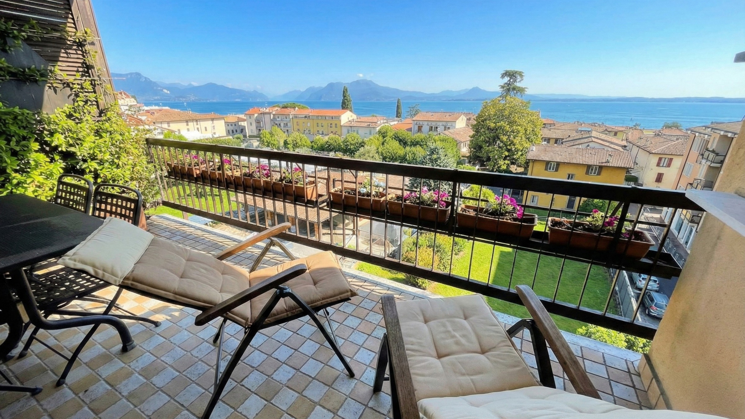 Nel cuore pulsante del centro storico di Desenzano del Garda, a pochi passi dalla spiaggia, si trova Ciao Lago, un raffinato appartamento situato al quarto piano di un tranquillo condominio con ascensore. Il nome stesso evoca la magia del lago, che si svela in tutta la sua bellezza dalla splendida terrazza privata, il luogo ideale per lasciarsi incantare da tramonti mozzafiato o semplicemente godere della brezza leggera che accarezza l’acqua.