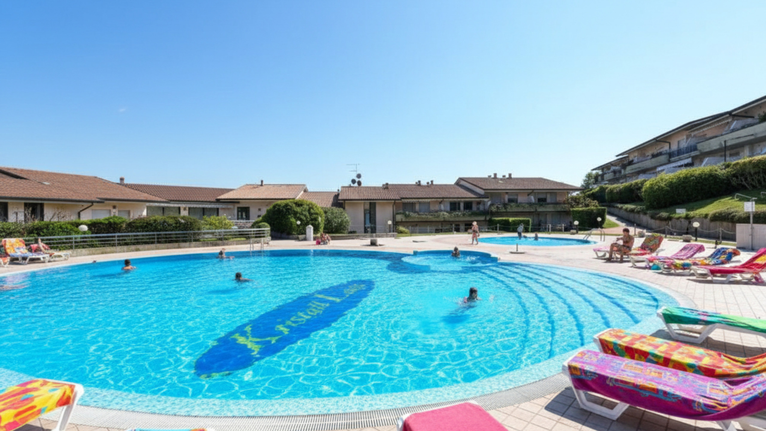 Inoltre, il residence offre due splendide piscine, ideali per rinfrescarsi durante le giornate più calde. Le sdraio riservate agli ospiti sono perfette per il relax. L’appartamento è dotato di Wi-Fi gratuito, climatizzatore e un posto auto esterno, rendendo il soggiorno ancora più comodo e pratico.