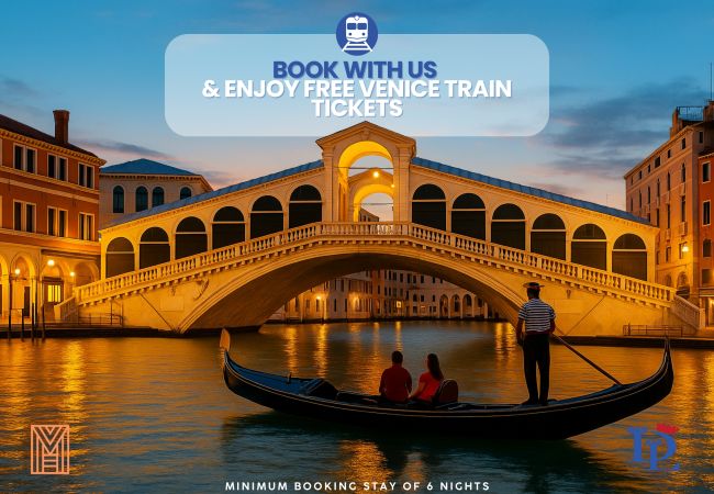 ✨ Per tutti coloro che soggiorneranno almeno 6 notti, Desenzanoloft omaggerà a tutto il gruppo un biglietto ferroviario di andata e ritorno in giornata (day trip) per visitare la splendida Venezia.