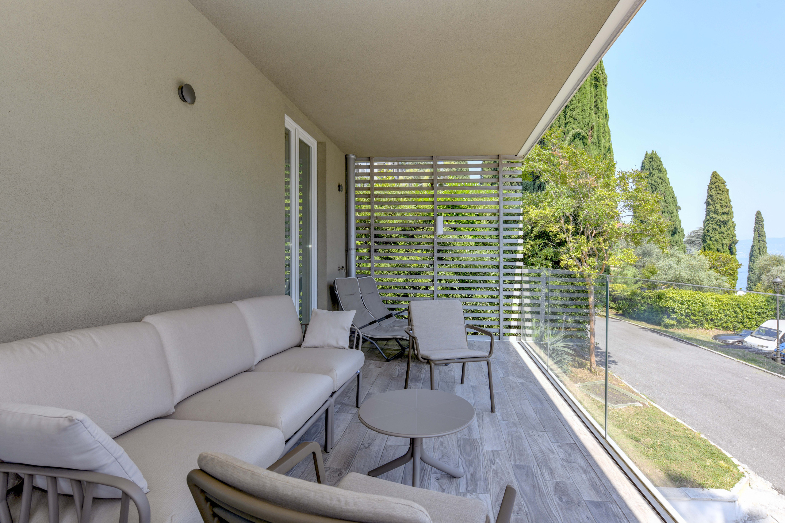 Die Wohnung ist modern, geräumig und hübsch eingerichtet. Toll ist auch der sehr schöne Pool auf dem Dach und der große Balkon mit Sicht auf den Gardasee.