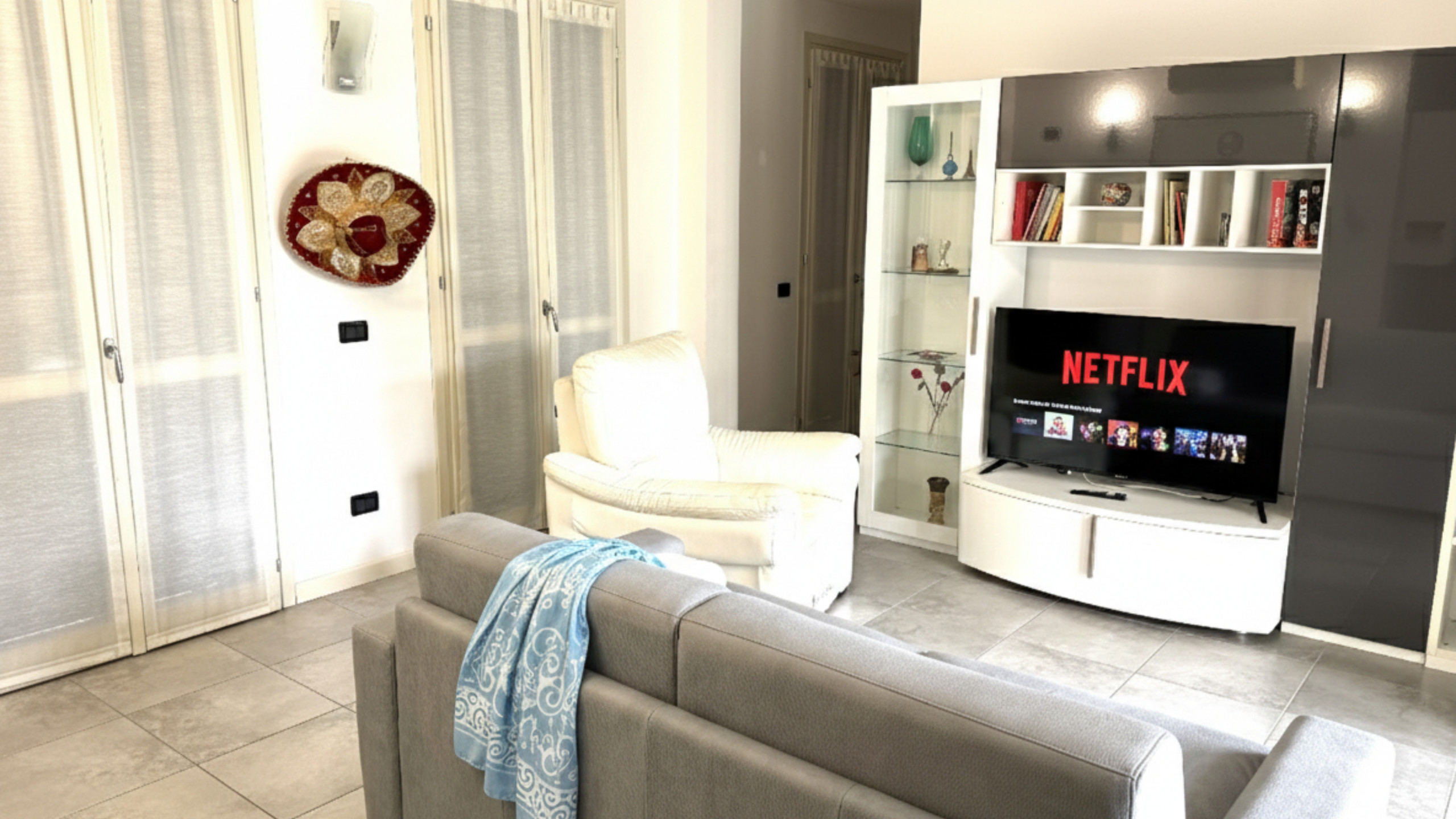 Il bagno dell’appartamento è spazioso e funzionale, attrezzato con una moderna doccia, wc con maniglioni adatti ai disabili, bidet e lavatrice, offrendo la massima comodità anche a chi ha esigenze particolari. La scelta di ogni elemento è pensata per garantire un soggiorno piacevole e senza stress, facendo sentire gli ospiti sempre a loro agio.