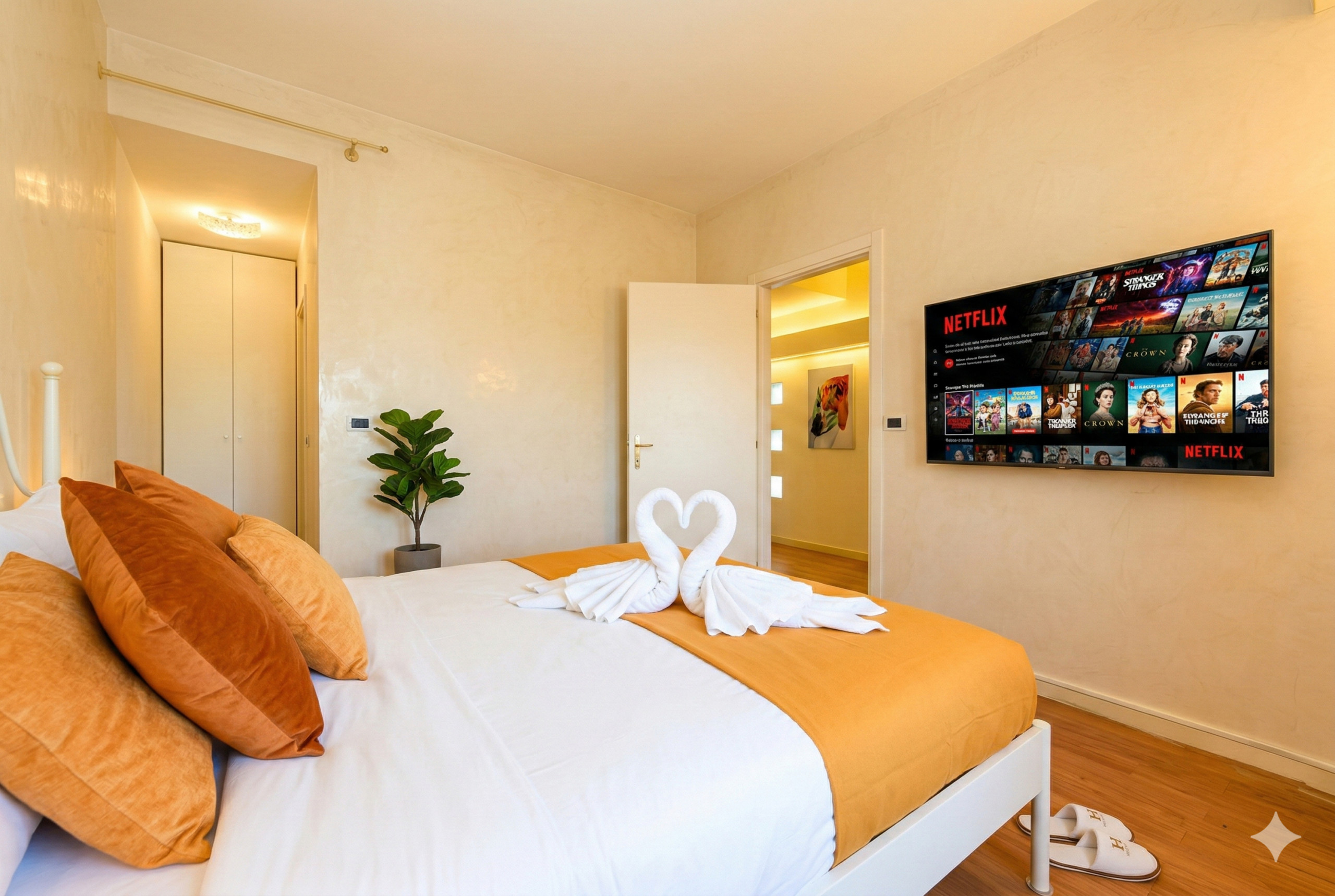 Il bagno dell’appartamento è spazioso e funzionale, attrezzato con una moderna doccia, wc con maniglioni adatti ai disabili, bidet e lavatrice, offrendo la massima comodità anche a chi ha esigenze particolari. La scelta di ogni elemento è pensata per garantire un soggiorno piacevole e senza stress, facendo sentire gli ospiti sempre a loro agio.