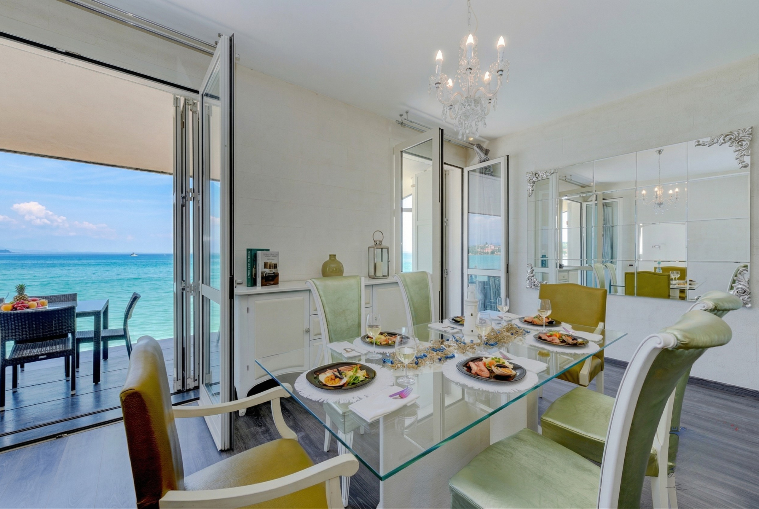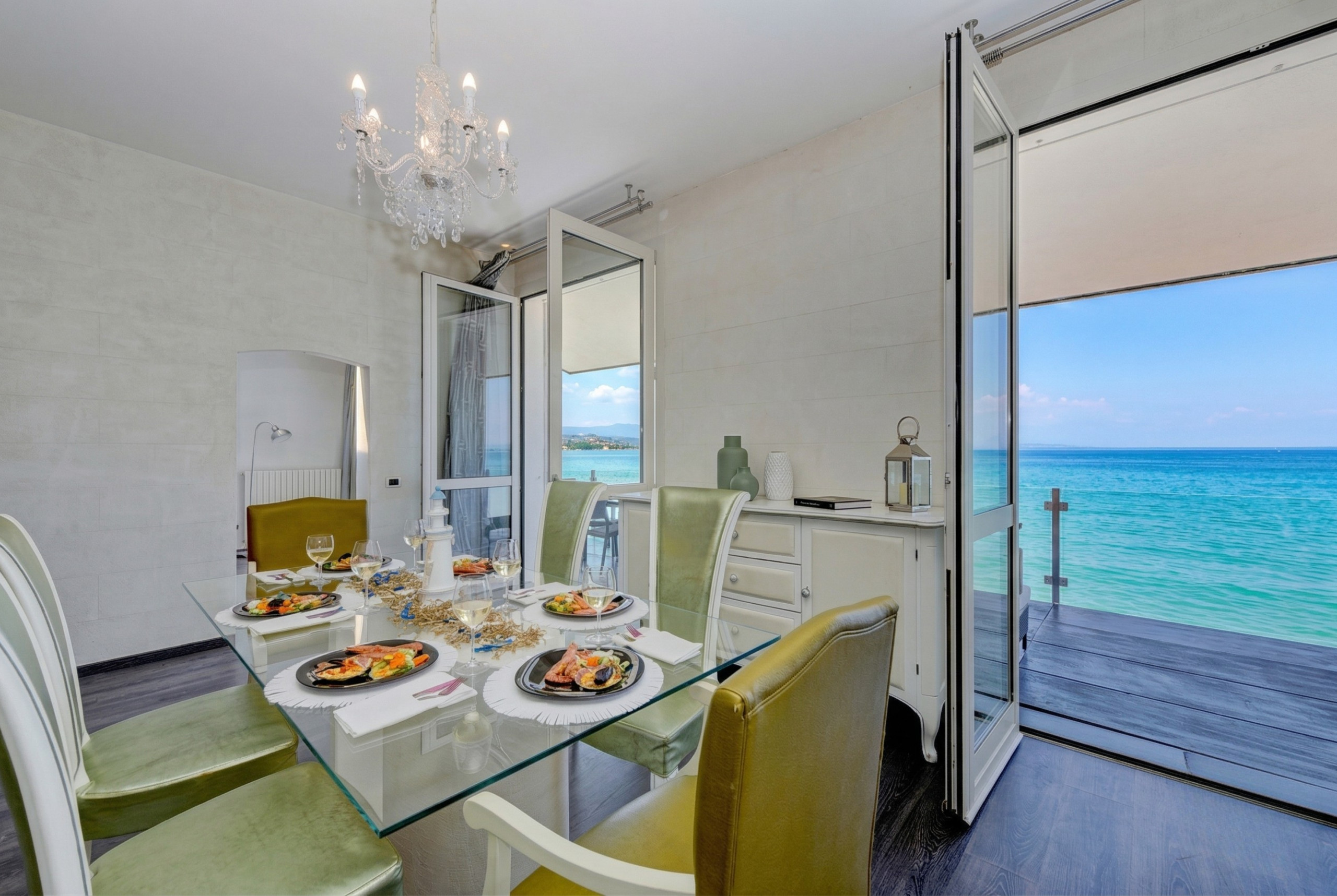 Appena varcato il cancello, si viene accolti da un giardino curato che circonda la proprietà, un angolo perfetto per godersi la natura in totale privacy. L’ingresso lascia subito intuire l’attenzione ai dettagli che caratterizza l’intera abitazione: le pareti decorate con gusto, i lampadari raffinati e l’atmosfera calda e accogliente creano un ambiente unico. Proseguendo, sulla sinistra si apre un ampio e luminoso soggiorno, un luogo pensato per il relax e la convivialità, arredato con un comodo divano, una televisione a schermo piatto e una zona pranzo che si affaccia direttamente sull’ampia terrazza privata. È proprio da qui che si può ammirare lo spettacolo del lago, che regala momenti indimenticabili a qualsiasi ora del giorno.