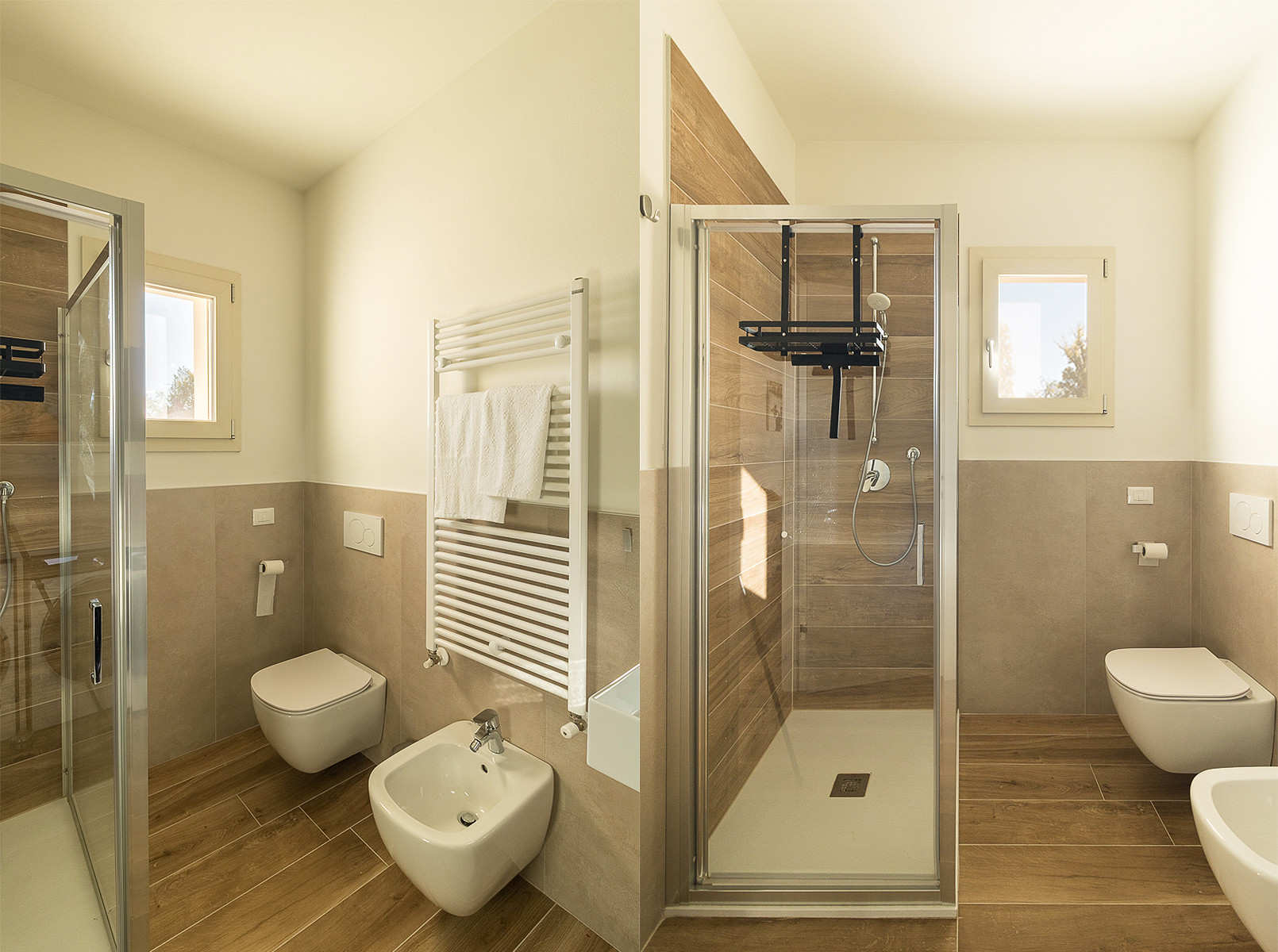 Al piano superiore si trovano le tre camere da letto, tutte dotate di letto matrimoniale e armadio. Il piano viene completato dal bagno con doccia, lavabo e WC.