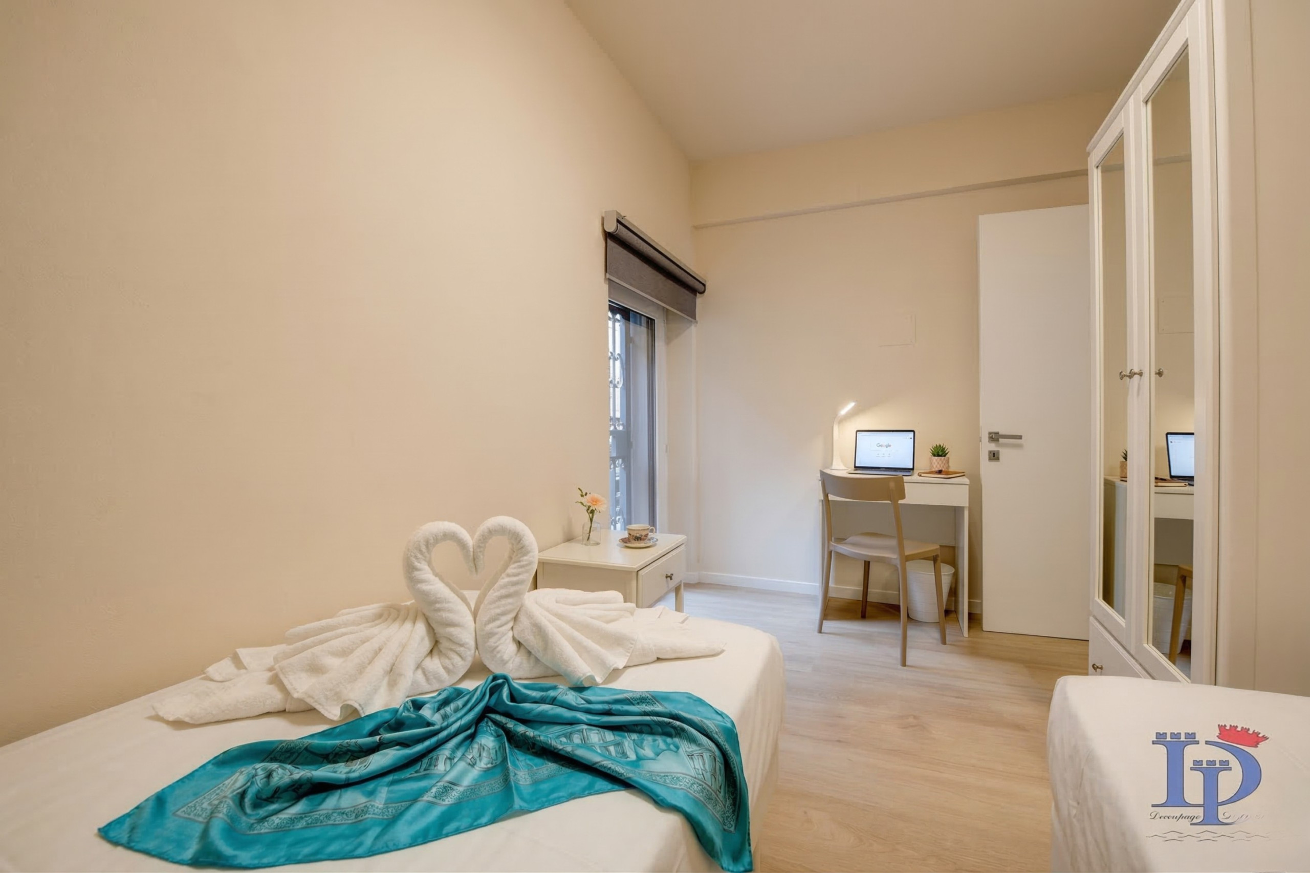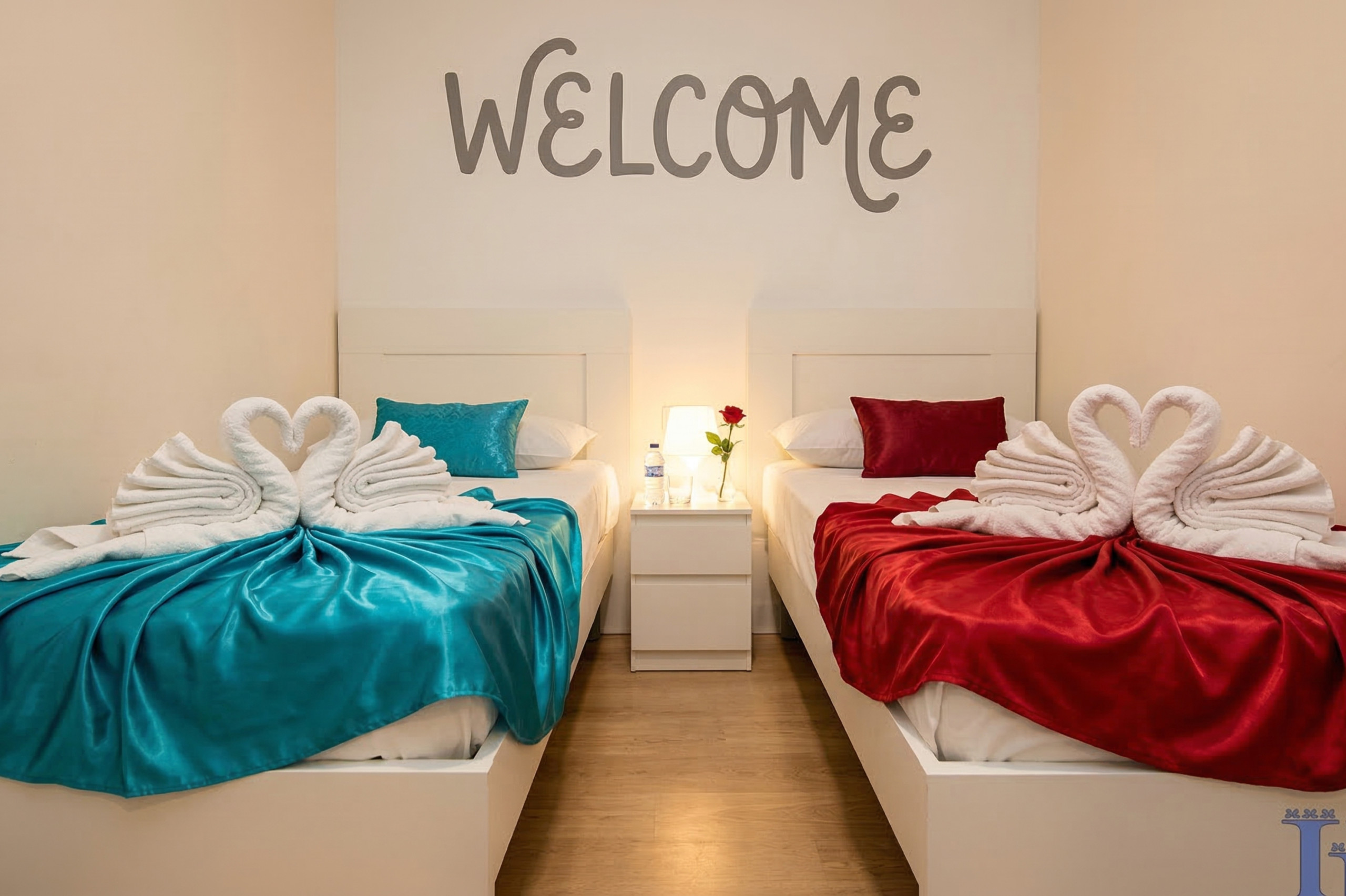Das zweite Schlafzimmer, perfekt für Familien oder Freundesgruppen, verfügt über zwei Einzelbetten, einen geräumigen Kleiderschrank, einen Spiegel und einen privaten Balkon, eine intime Ecke zum Atmen der Altstadt-Luft und zum Genießen der Ruhe.