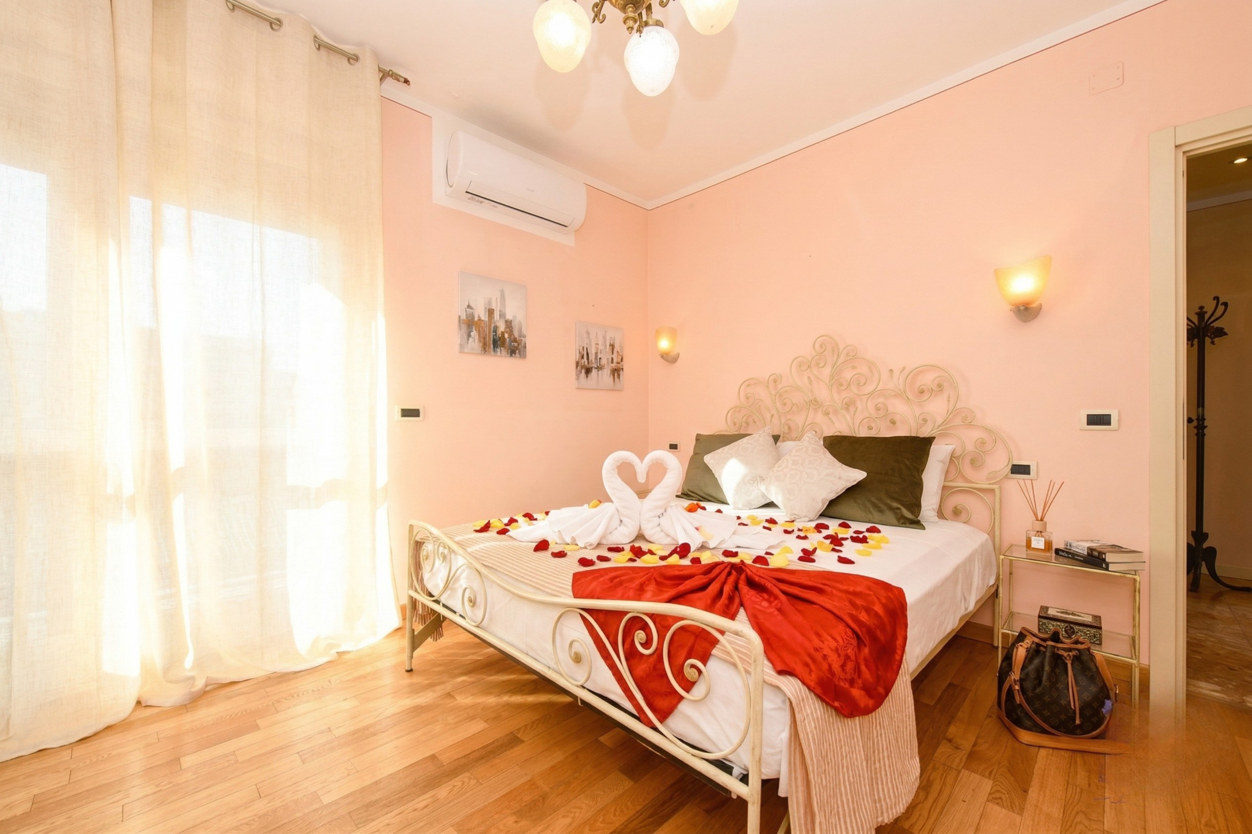 Neben dem Badezimmer liegt das zweite Doppelzimmer, elegant und einladend, gekennzeichnet durch ein Bett aus Schmiedeeisen, eine Kommode und einen großen Kleiderschrank. Auch dieses Zimmer verfügt über einen privaten Balkon und bietet den Gästen einen Rückzugsort im Freien. Beide Zimmer sind mit Matratzen und hochwertigen Topper ausgestattet, die einen erholsamen Schlaf und unvergleichlichen Komfort garantieren.