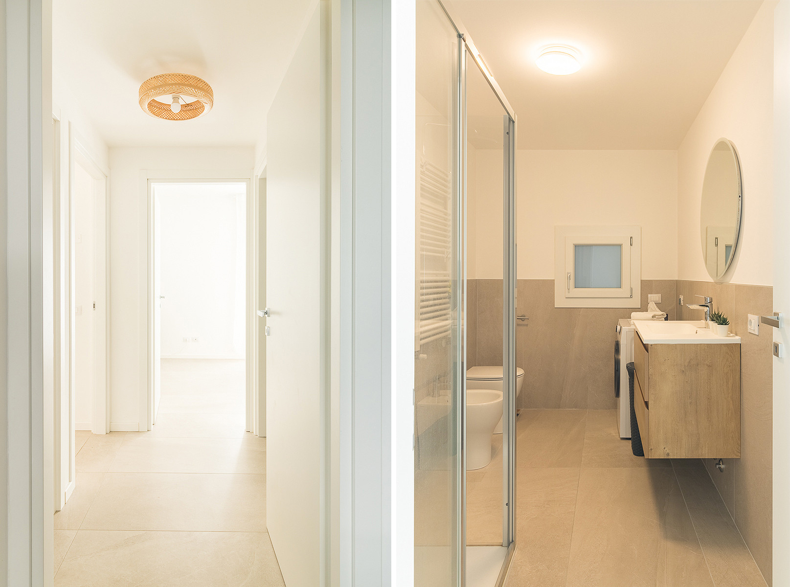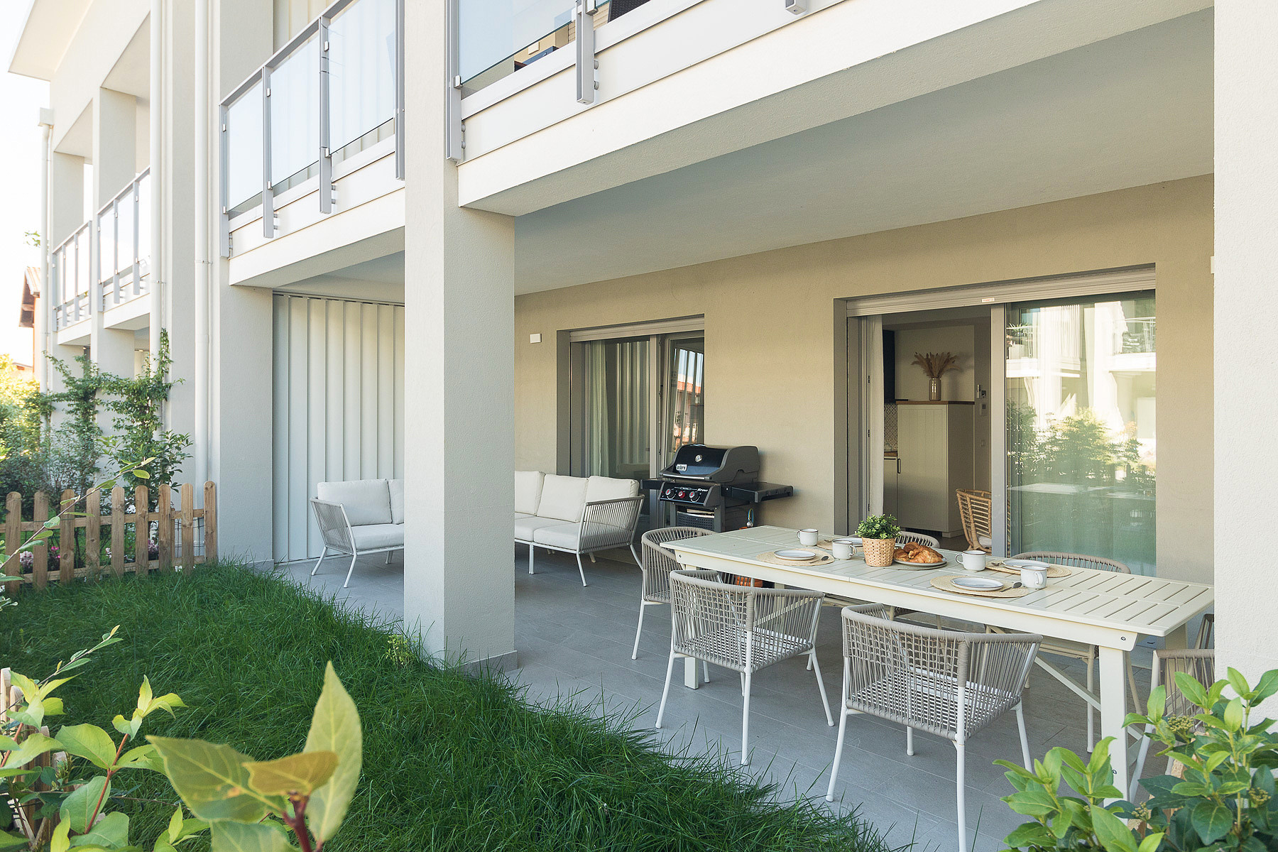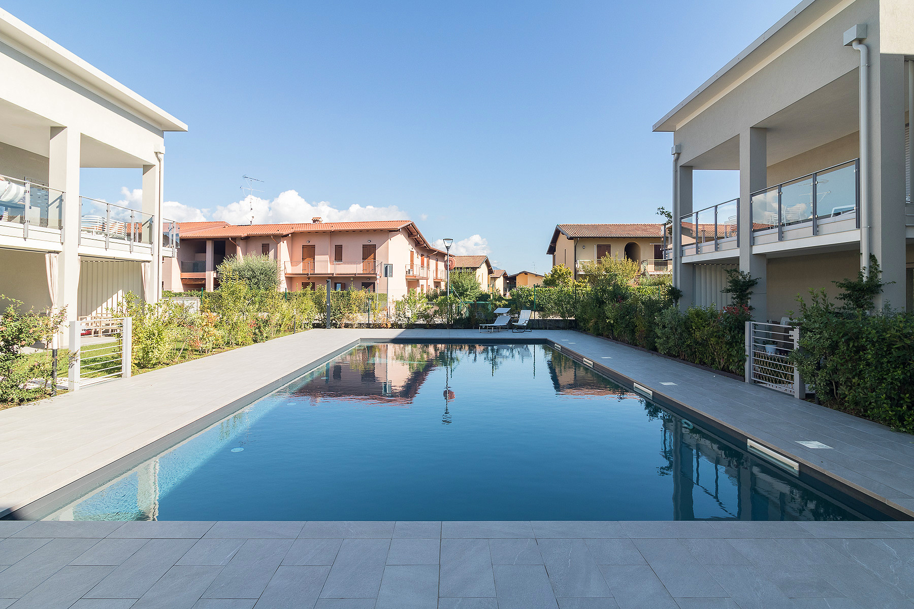 In einer neu erbauten Wohnanlage mit Gemeinschaftspool gelegen, bietet die Residenza Le Ninfee moderne, gepflegte und elegante Räume. Die Einrichtung ist schlicht gehalten und in neutralen Holztönen gestaltet, was den Räumen ein angenehmes Gefühl von Leichtigkeit und Harmonie verleiht.