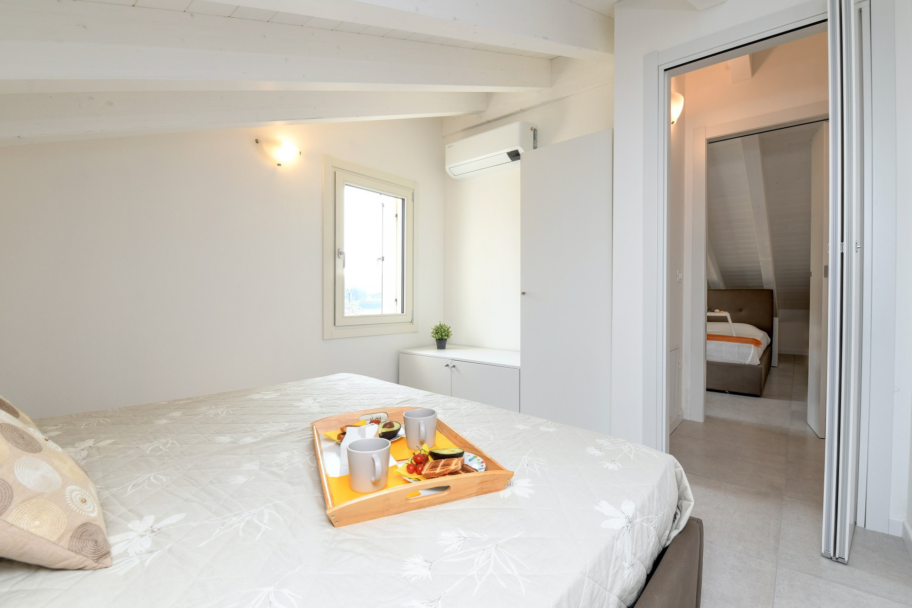 Die 4 Wohnungen Typ Star liegen im Dachgeschoss des Hauses und bieten ausreichend Platz für bis zu 4 Personen. Die zwei separaten Schlafzimmer verfügen über jeweils ein gemütliches Doppelbett. Bettwäsche, fertig bezogen, ist pro gebuchter Personenanzahl für Sie im Preis inbegriffen. Die komplett ausgestattete Küche lässt der Kreativität beim Kochen keine Grenzen setzen.
