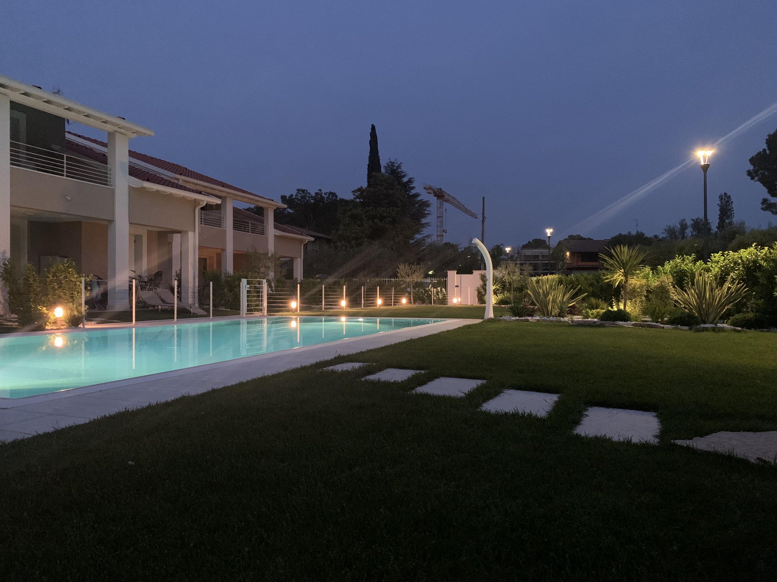 Die Außenanlage mit Pool ist toll. Alles sehr gepflegt und sauber. Der Service von GardaFewo ist super. Es wurde sich immer sofort gekümmert, wenn irgendwas nicht funktioniert hat. 5 Sterne. Die Entfernung zum See ist gut (4 Minuten zu Fuß) nur zum Ortskern muss man leider mit dem Auto oder Fahrrad fahren.