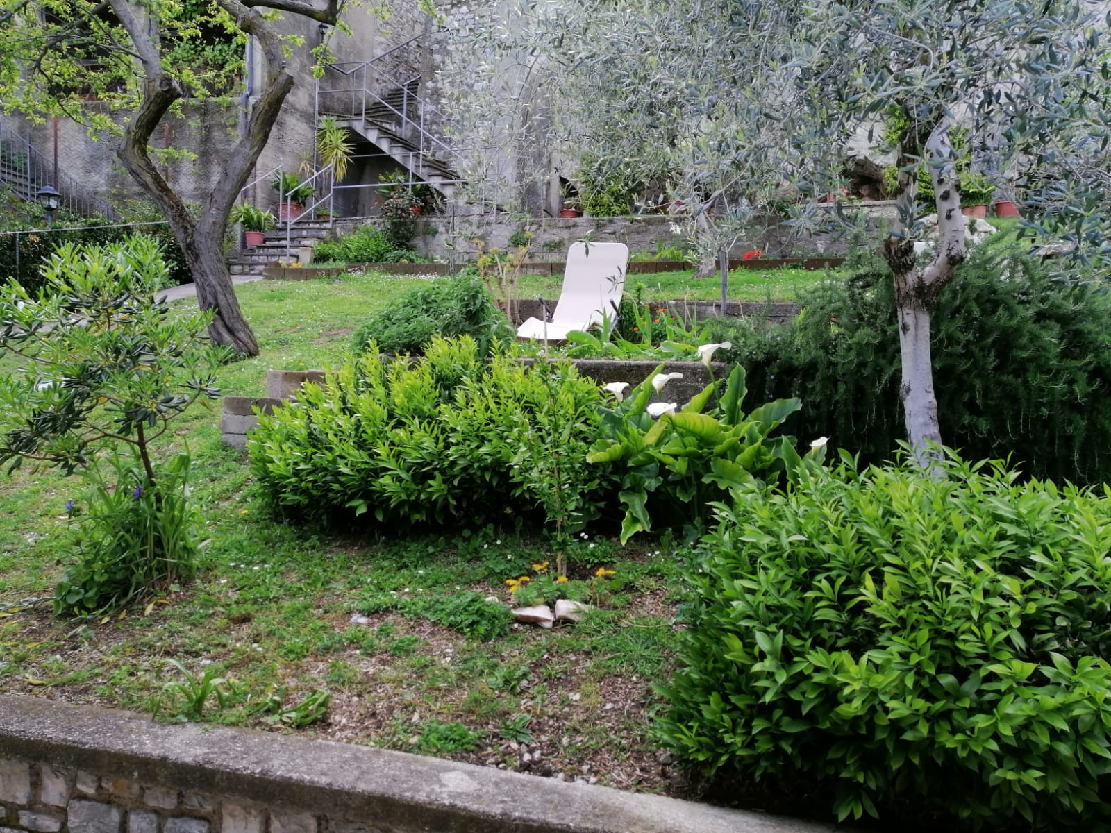 Zusätzlich zu den privaten Bereichen steht unseren Gästen — gemeinsam mit nur einer weiteren Wohnung — ein wunderschöner terrassenförmig angelegter Garten zur Verfügung, wie er typisch für diese Region ist und sich entlang des Berges erstreckt. Dort finden Sie Liegestühle, ideal zum Entspannen in Ruhe und Natur.