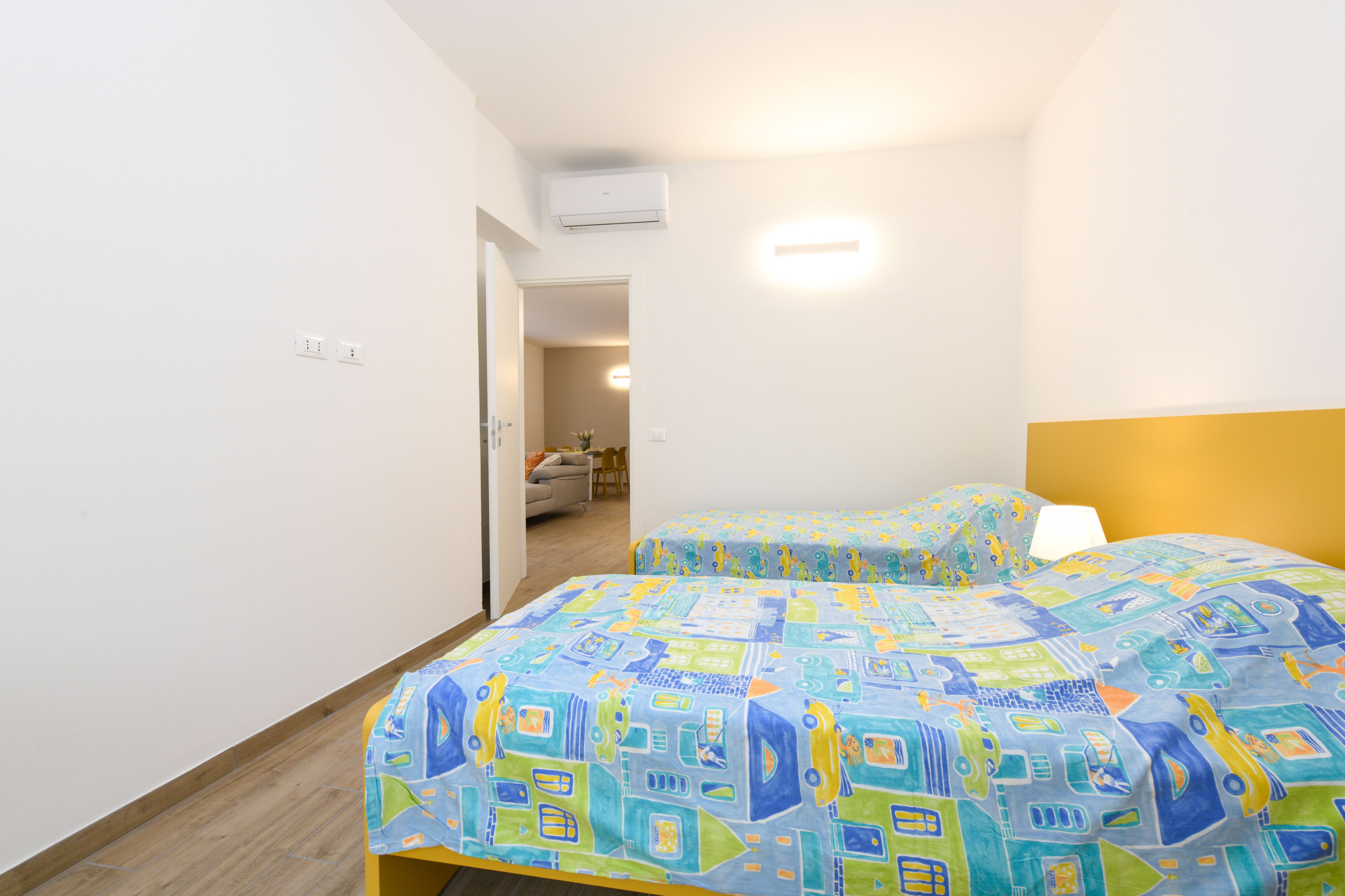 Dieses moderne und komfortable Apartment verfügt über ein Schlafzimmer mit Doppelbett und ein Schlafzimmer mit zwei zusammenschiebbaren Einzelbetten. Das Badezimmer ist mit einer Dusche und einer Waschmaschine ausgestattet, um maximalen Komfort während Ihres Aufenthalts zu gewährleisten.