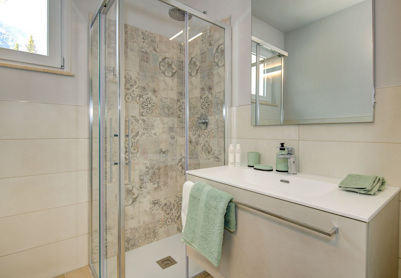 Im Untergeschoss befindet sich das dritte Schlafzimmer mit Doppelbett und ein Badezimmer mit Dusche und Waschmaschine (kostenfrei Nutzung).